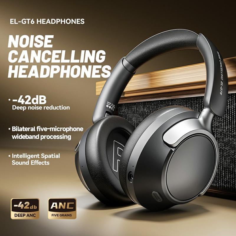 EL-GT6 Auriculares inalámbricos ANC sobre la oreja con Bluetooth 6.0, sonido HiFi