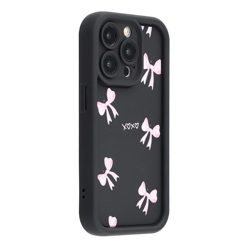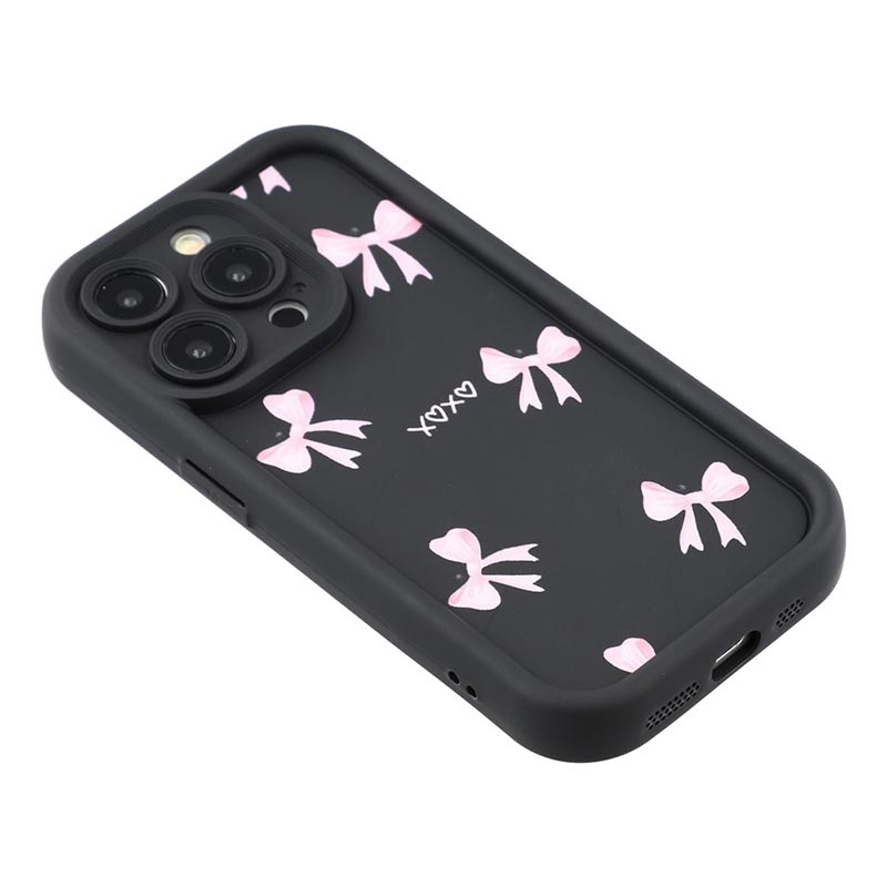 Elegante funda de TPU antichoque para iPhone 15 Pro Max con bordes elevados - Negro / Lazo