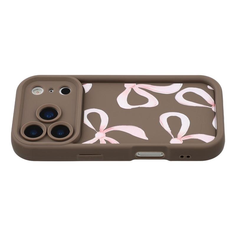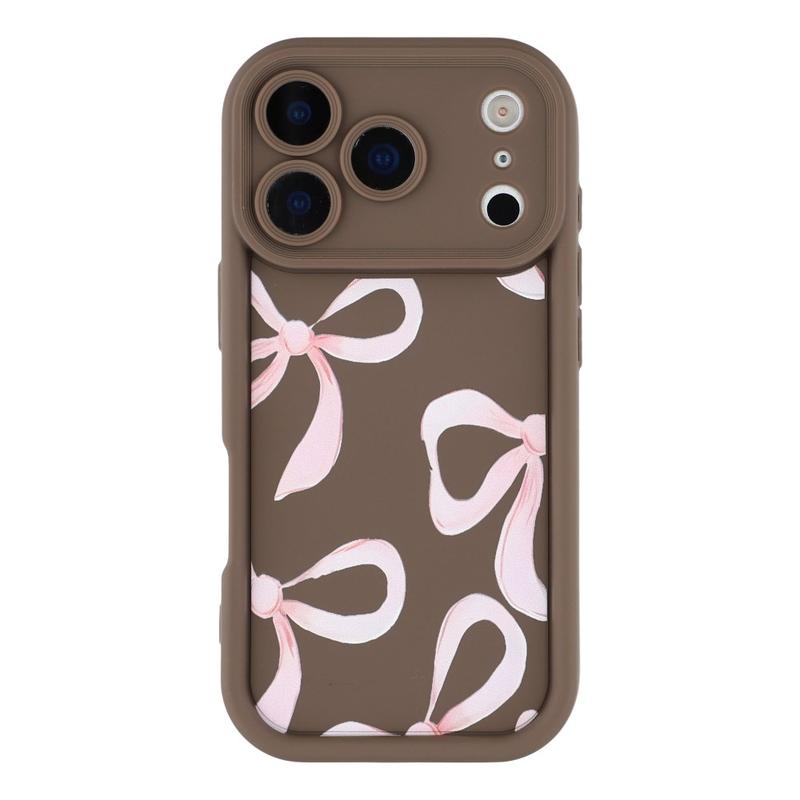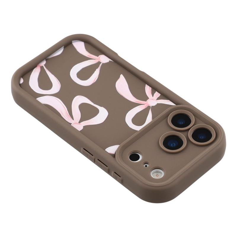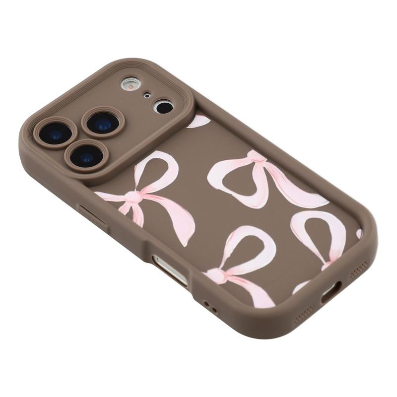 Elegante funda de TPU antichoque para iPhone 17 Pro con bordes elevados - Marrón / Lazo grande
