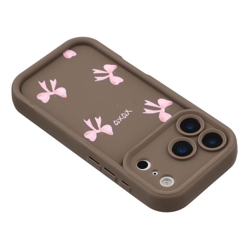 Elegante funda de TPU antichoque para iPhone 17 Pro Max con bordes elevados - Marrón / Lazo