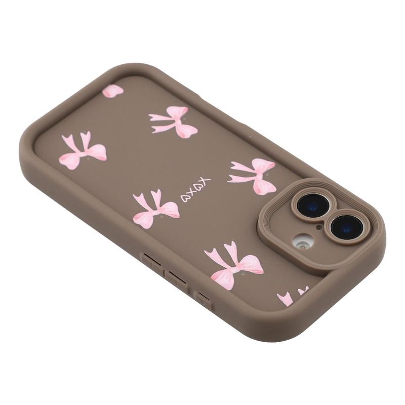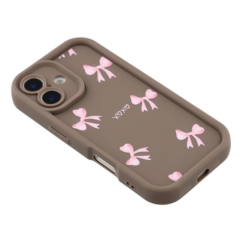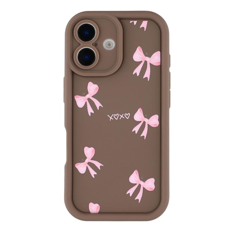 Elegante funda de TPU antichoque para iPhone 16 Plus con bordes elevados - Marrón / Lazo