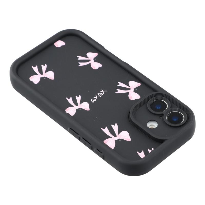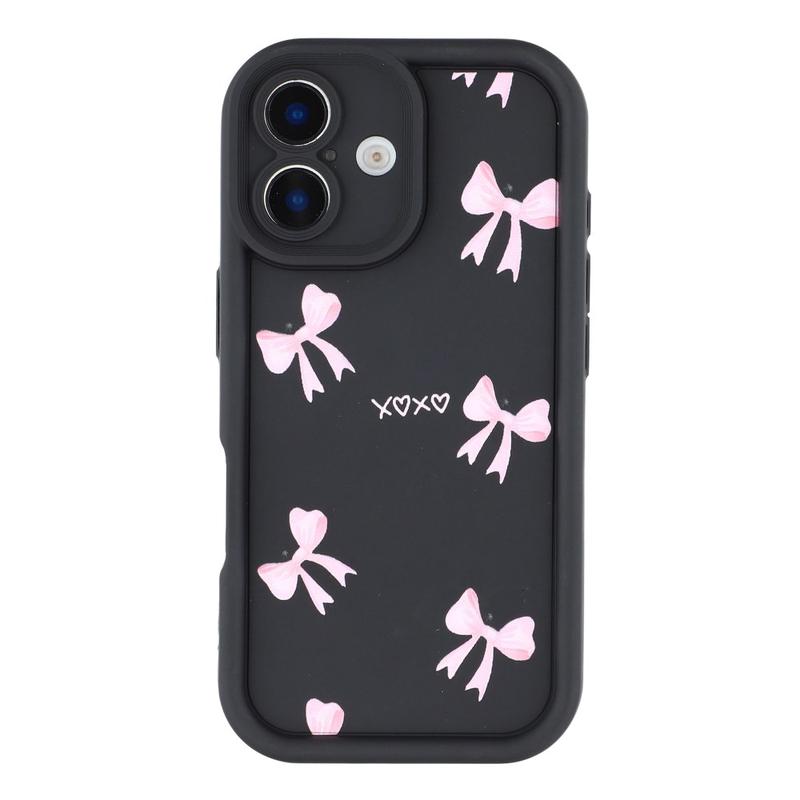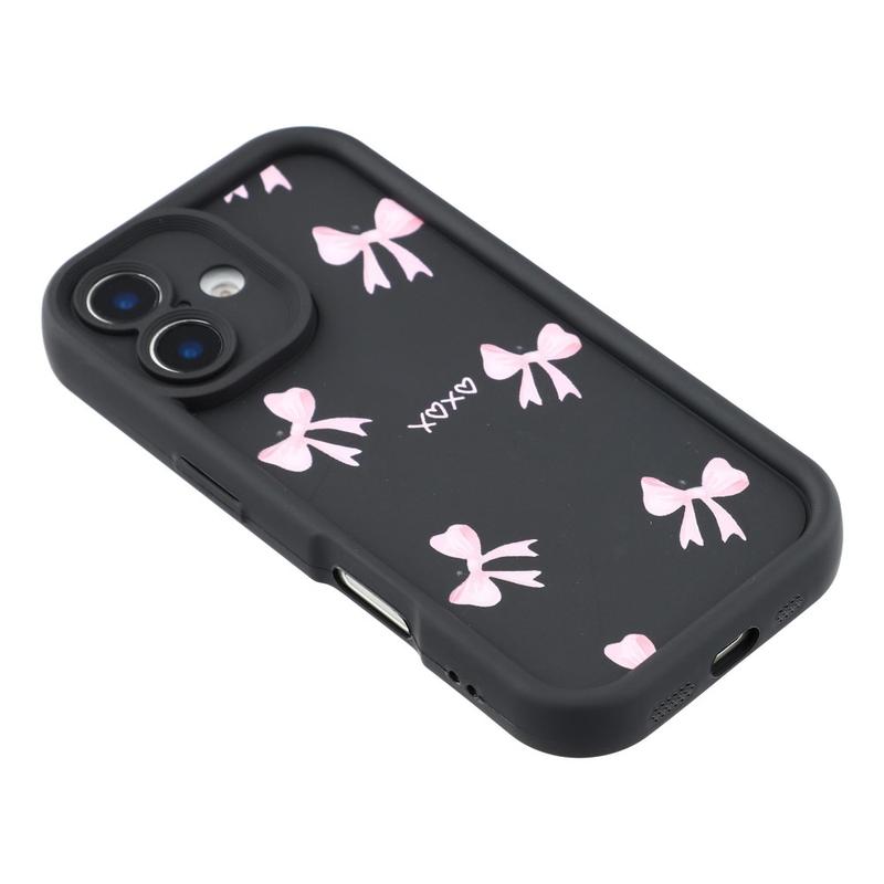Elegante funda de TPU antichoque para iPhone 16 Plus con bordes elevados - Negro / Lazo