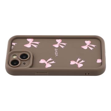 Elegante funda de TPU antichoque para iPhone 15 con bordes elevados - Marrón / Lazo