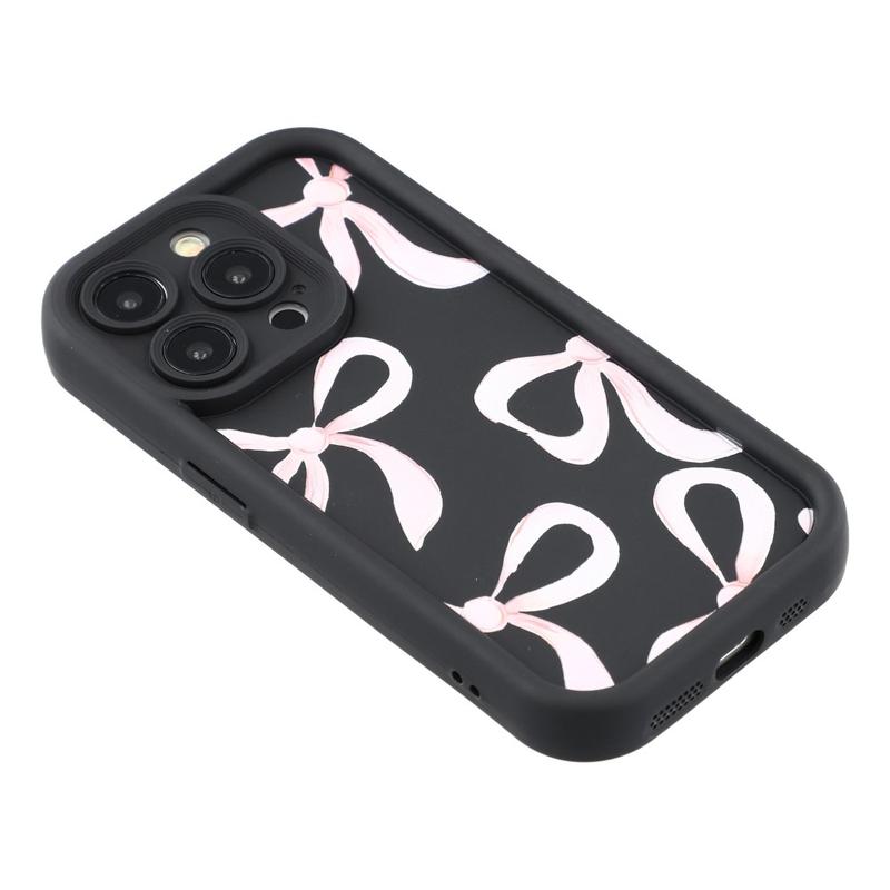 Elegante funda de TPU antichoque para iPhone 14 Pro Max con bordes elevados - Negro / Lazo grande