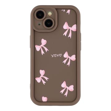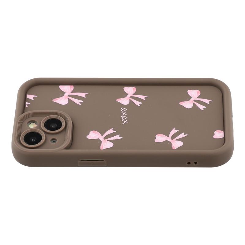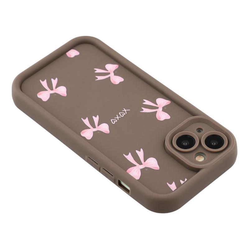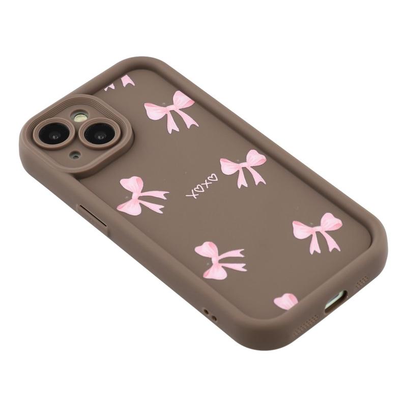 Elegante funda de TPU antichoque para iPhone 14 Plus con bordes elevados - Marrón / Lazo