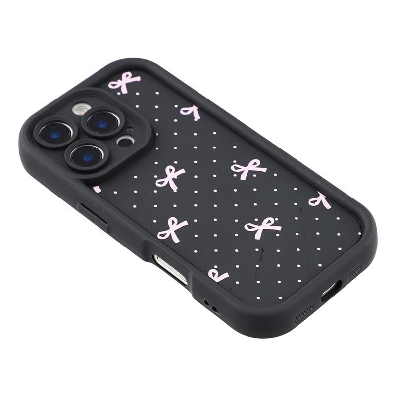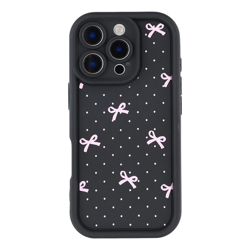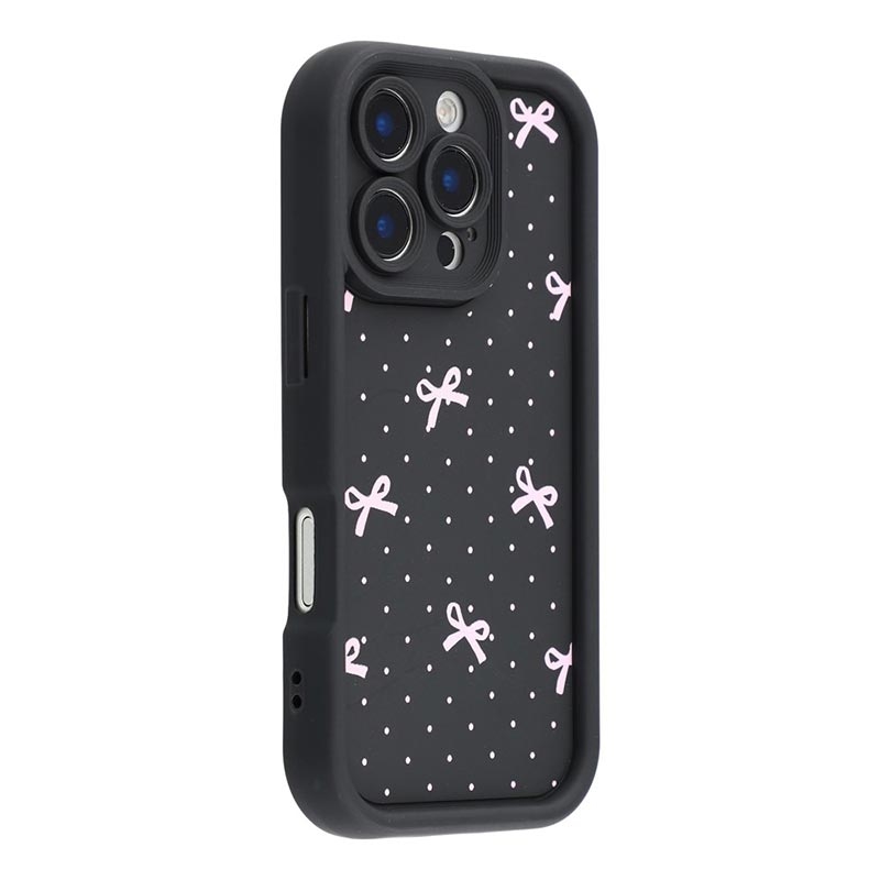 Elegante funda de TPU antichoque con bordes elevados para el iPhone 16 Pro - Negro / Lazo de lunares