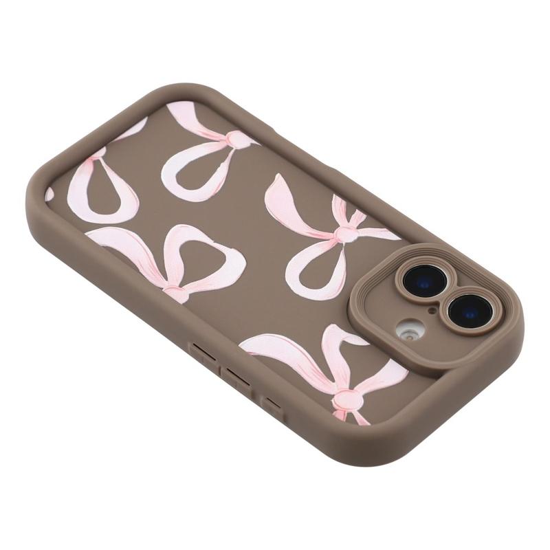 Elegante funda de TPU antichoque para iPhone 16 con bordes elevados - Marrón / Lazo grande