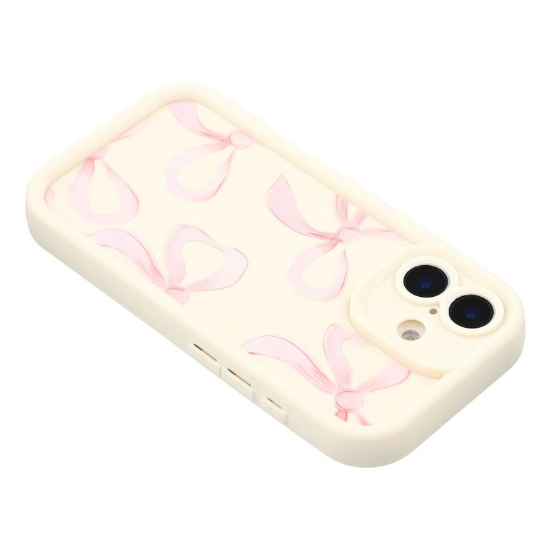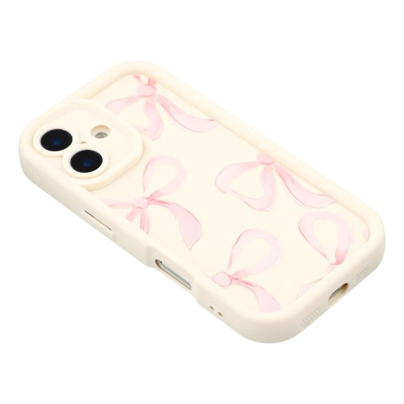 Elegante funda de TPU antichoque para iPhone 16 con bordes elevados - Blanca / Lazo grande