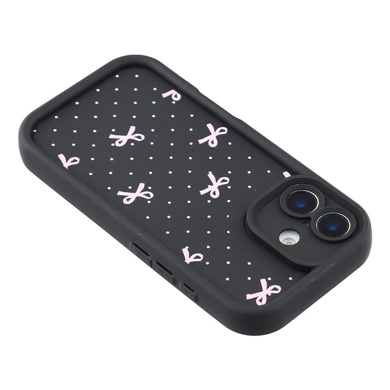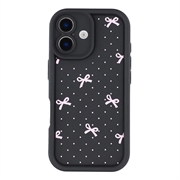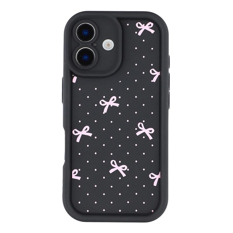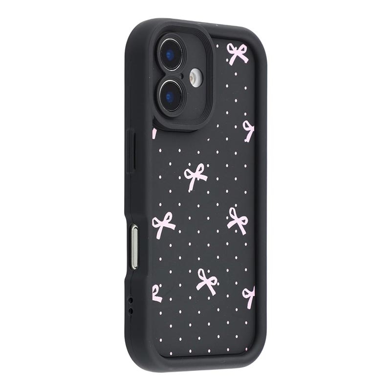 Elegante funda de TPU antichoque con bordes elevados para el iPhone 16 - Negro / Lazo de lunares