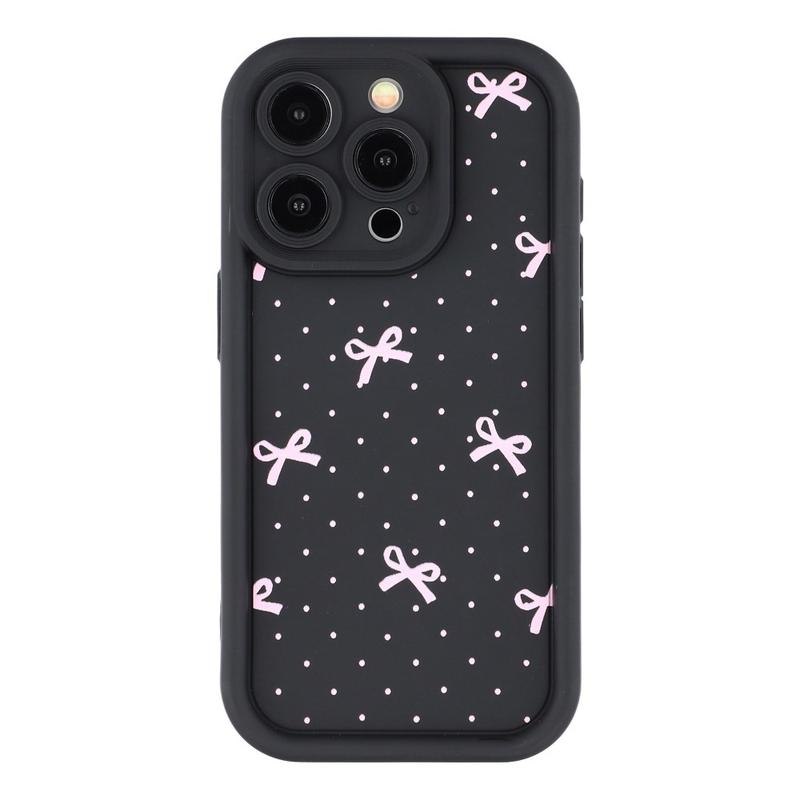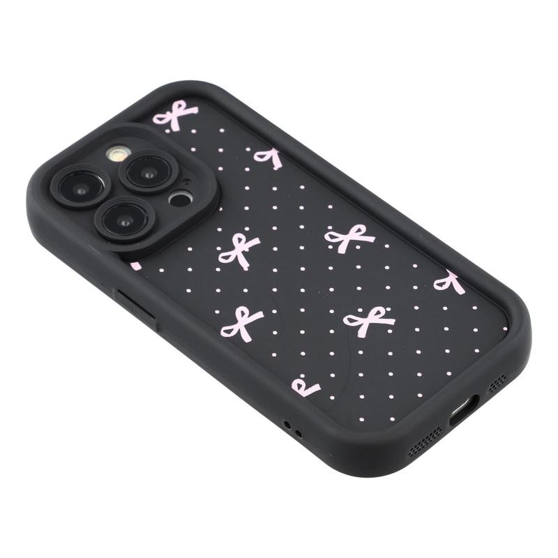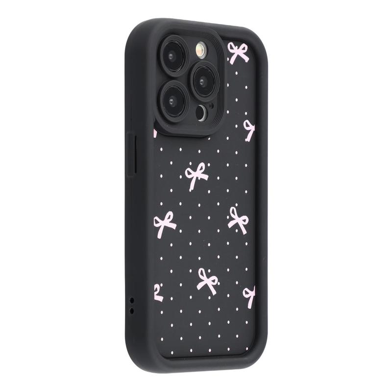 Elegante funda de TPU antichoque con bordes elevados para el iPhone 15 Pro - Negro / Lazo de lunares