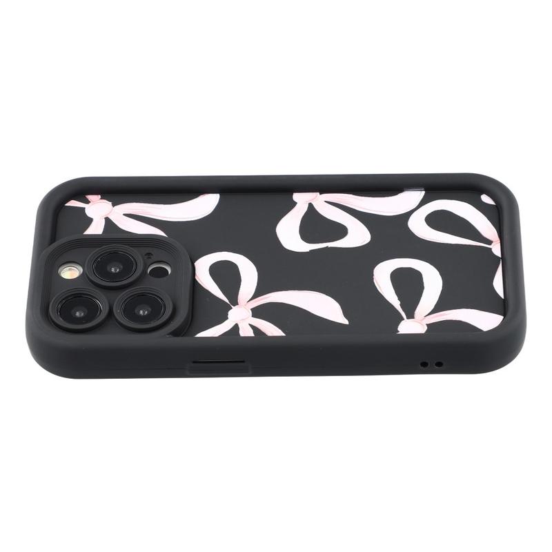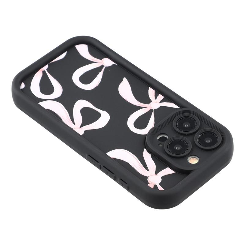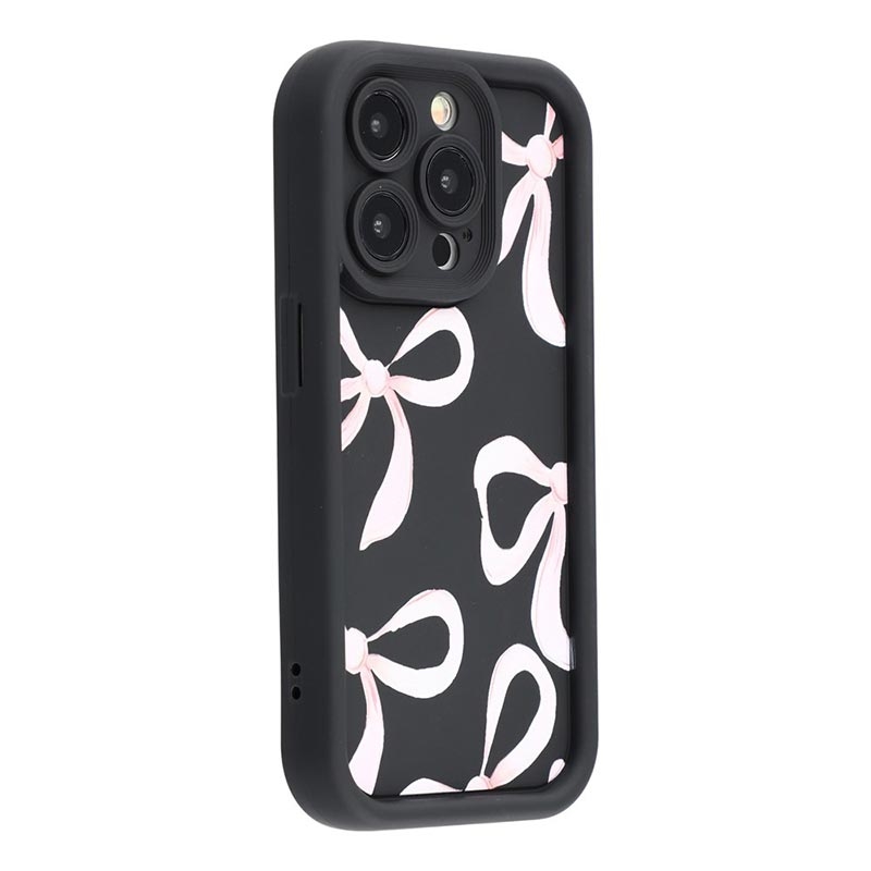 Elegante funda de TPU antichoque para iPhone 15 Pro con bordes elevados - Negro / Lazo grande