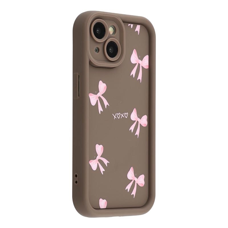 Elegante funda de TPU antichoque para iPhone 15 Plus con bordes elevados - Marrón / Lazo