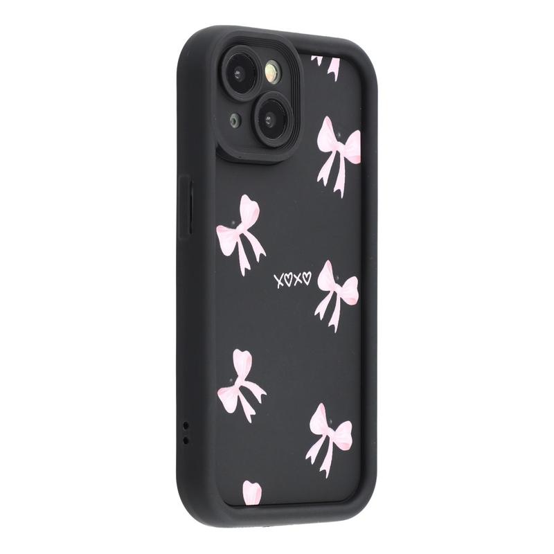 Elegante funda de TPU antichoque para iPhone 15 Plus con bordes elevados - Negro / Lazo
