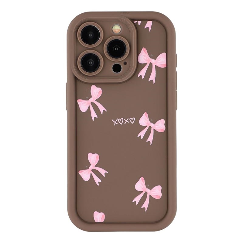 Elegante funda de TPU antichoque para iPhone 14 Pro con bordes elevados - Marrón / Lazo