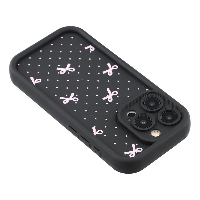 Elegante funda de TPU antichoque con bordes elevados para el iPhone 12 Pro Max - Negro / Lazo de lunares