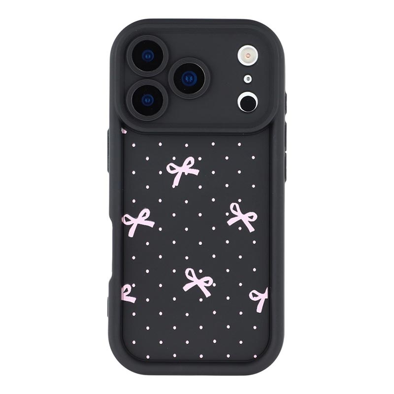 Elegante funda de TPU antichoque con bordes elevados para el iPhone 17 Pro - Negro / Lazo de lunares