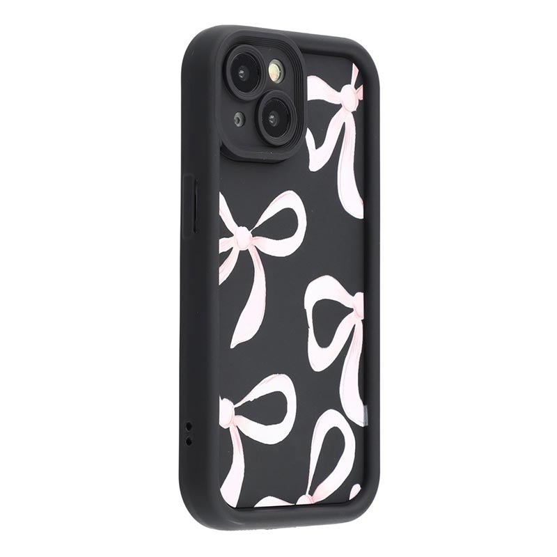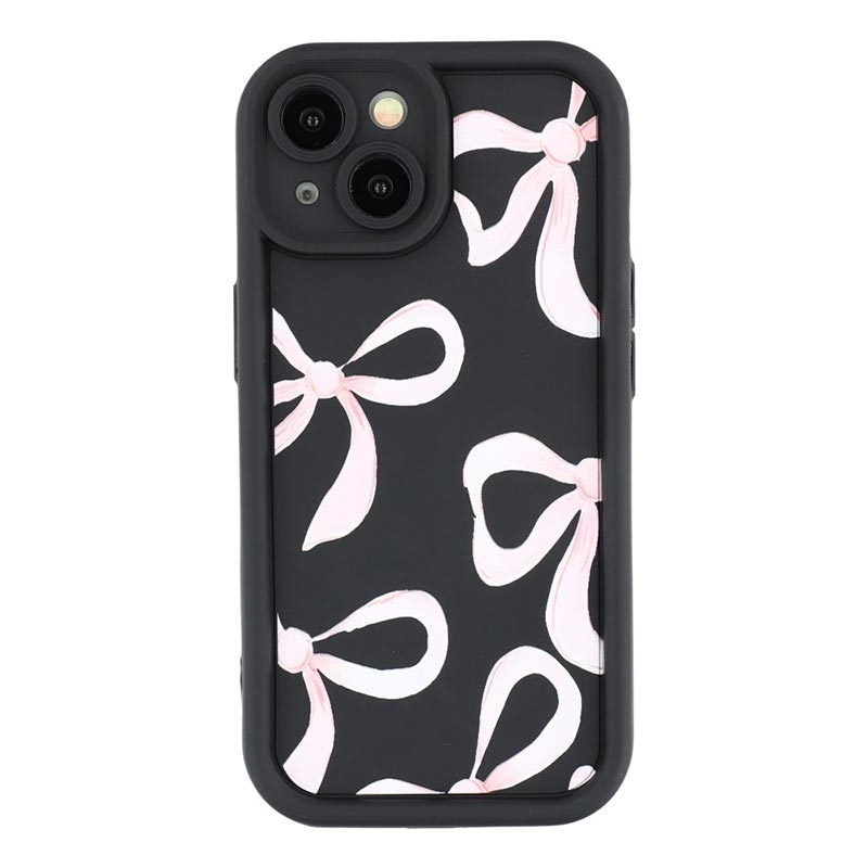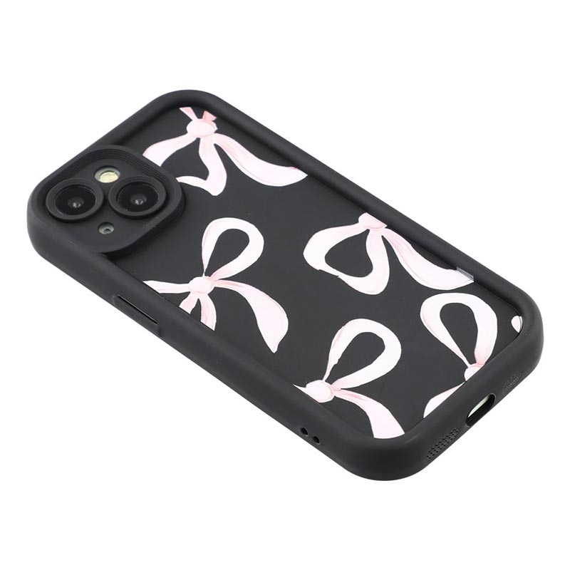 Elegante funda de TPU antichoque para iPhone 14 Plus con bordes elevados - Negro / Lazo grande