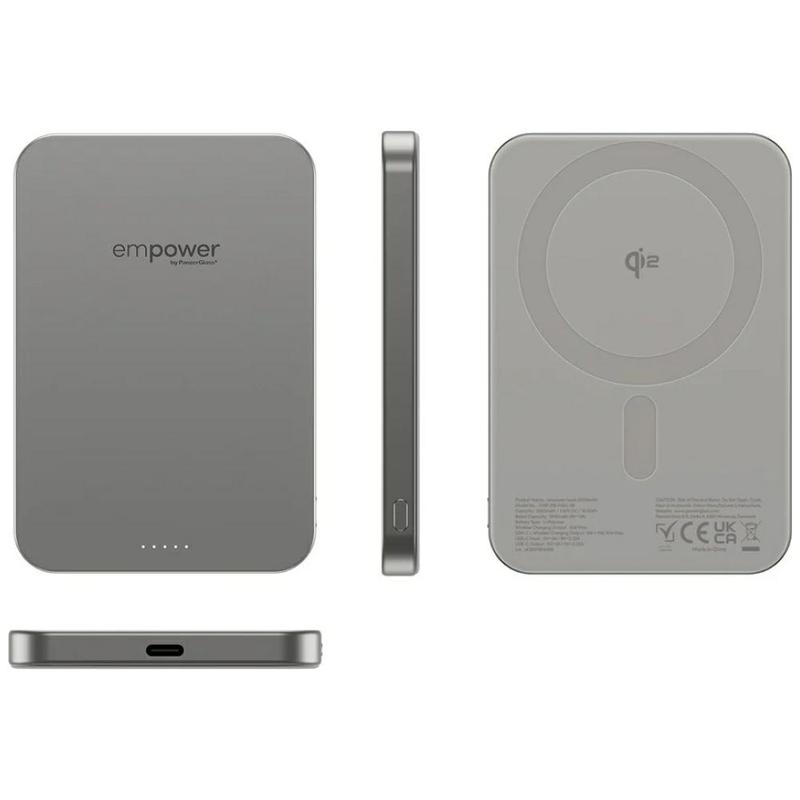 Empower by PanzerGlass Banco de energía inalámbrico magnético - 5000mAh Compatible con Qi2 y MagSafe - Titanio