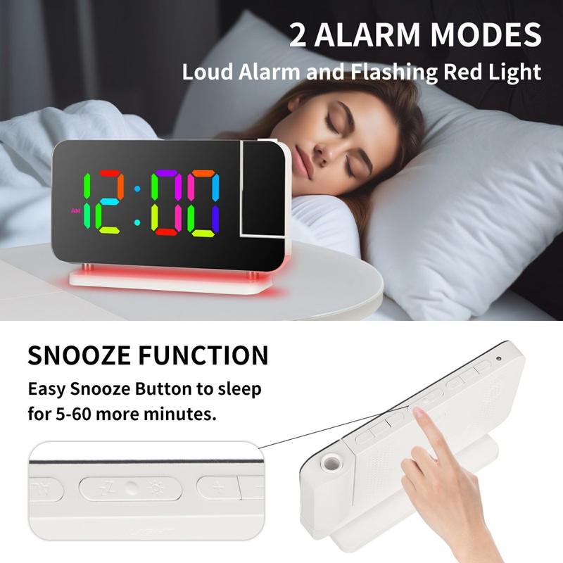 - Función de proyección: Muestra la hora en el techo con brillo ajustable y rotación de 360° para una cómoda visualización.
