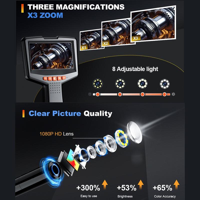 Equipado con una cámara de 8 mm de diámetro y 8 luces LED ajustables, este endoscopio garantiza una excelente visibilidad en entornos oscuros, estrechos o complejos. Ideal para inspección mecánica, fontanería, diagnóstico de automóviles y mantenimiento del hogar.