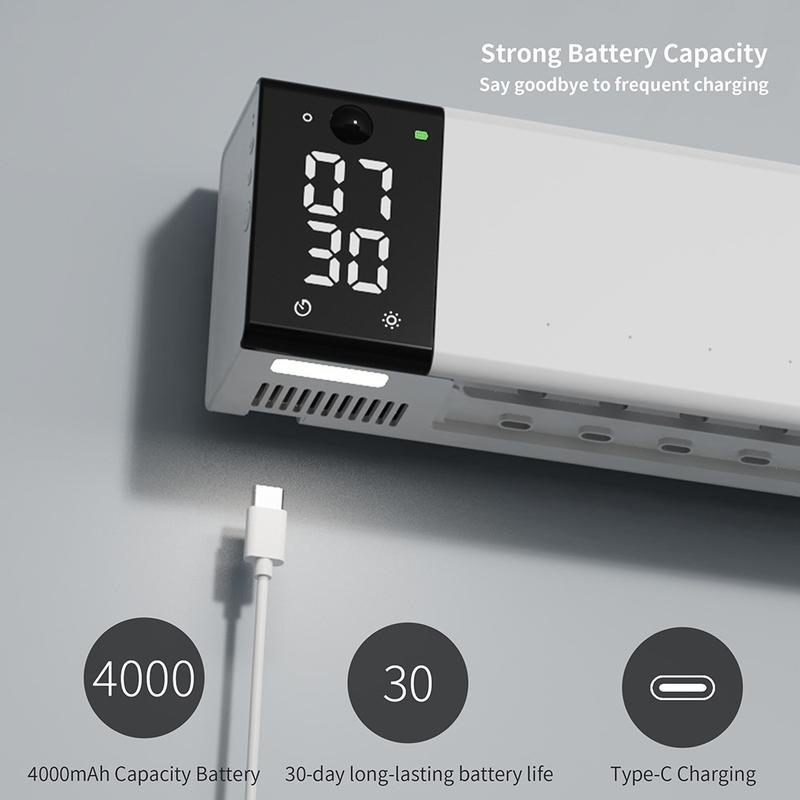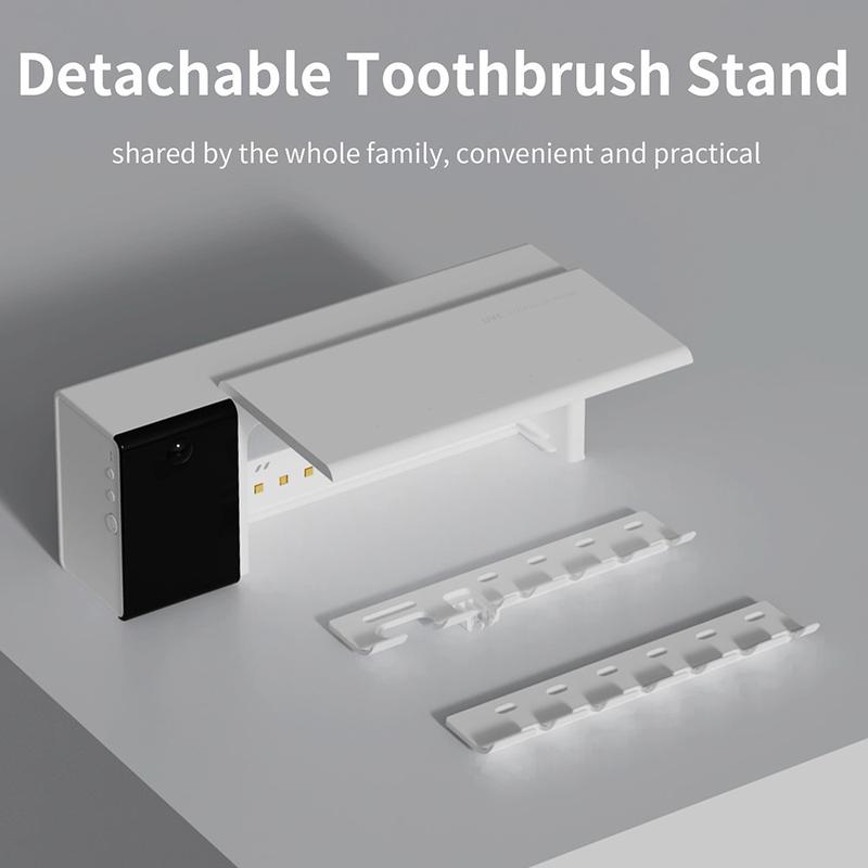 Mejore la higiene de su baño con el desinfectante UV inteligente para cepillos de dientes ES909, una estación multifuncional de esterilización y secado diseñada para los hogares modernos. Con su avanzada tecnología LED UV, elimina hasta el 99,99% de las bacterias, garantizando un cepillado más limpio y saludable. El sistema de secado por aire caliente integrado evita la acumulación de humedad, mientras que el reloj LED integrado y el temporizador táctil proporcionan comodidad y funcionalidad. Con un sistema de montaje en pared sin taladros, la instalación es rápida y sin daños, manteniendo su espacio organizado y elegante. Una suave luz nocturna ambiental añade confort y estilo a la decoración de su cuarto de baño.