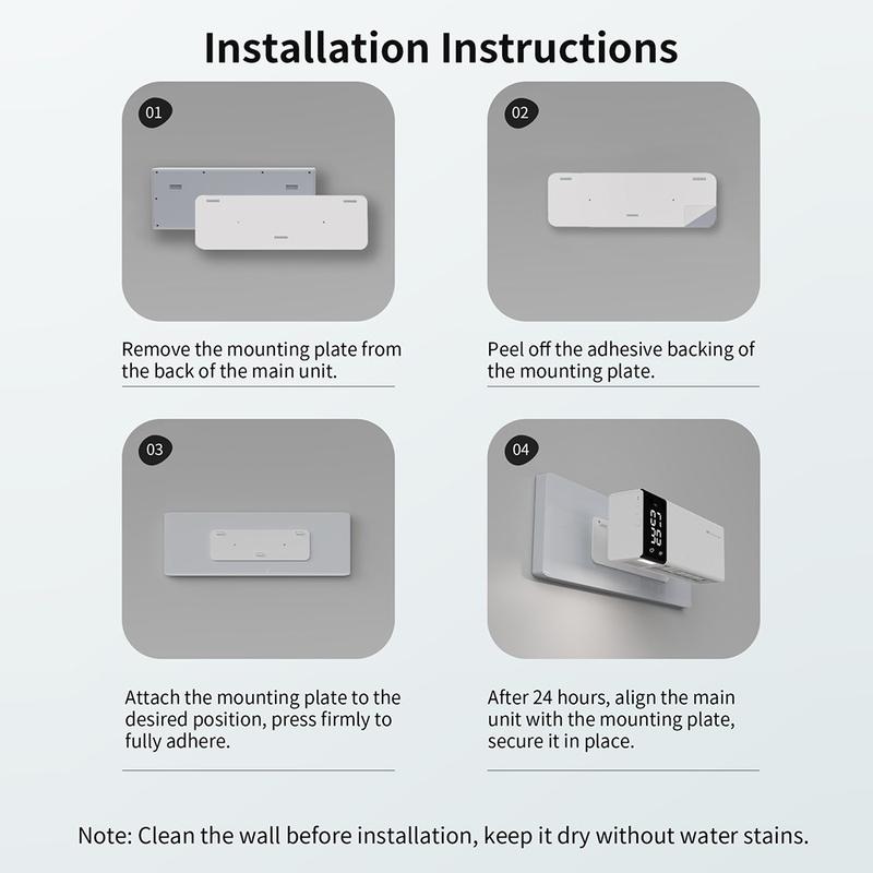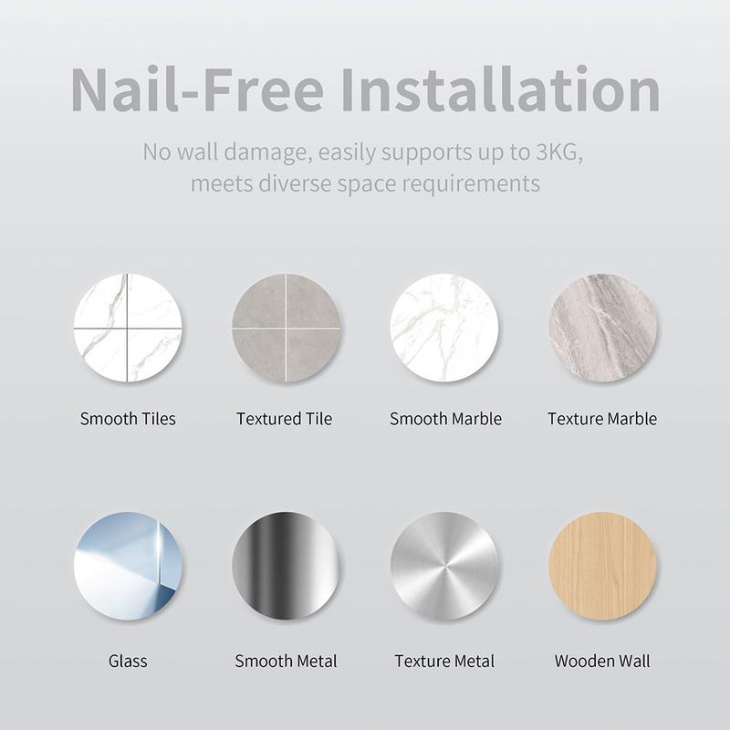 - Fácil instalación en la pared - El montaje adhesivo sin taladro mantiene las paredes intactas y la instalación es sencilla.