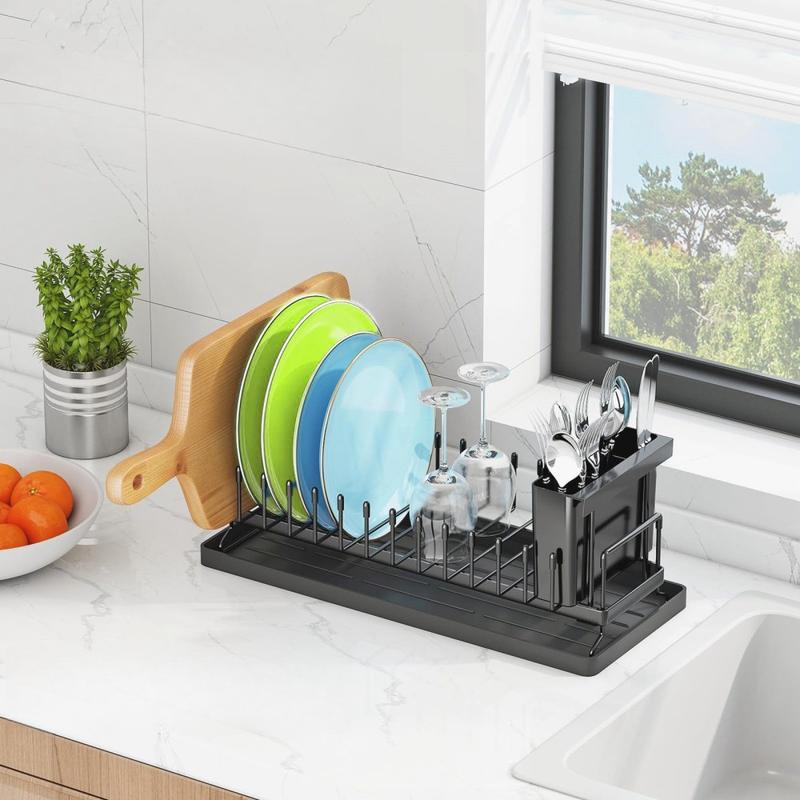 Este escurreplatos ofrece versatilidad, durabilidad y un diseño que ahorra espacio en una unidad compacta. Su estructura extensible y la bandeja de secado multiusos lo hacen perfecto para cocinas pequeñas, mientras que la construcción de acero al carbono garantiza una fiabilidad a largo plazo. Fácil de montar, fácil de limpiar y muy práctico, es una mejora inteligente para cualquier cocina.