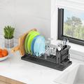 Escurreplatos extensible sobre fregadero de acero al carbono - Escurreplatos de cocina pequeño con bandeja de secado