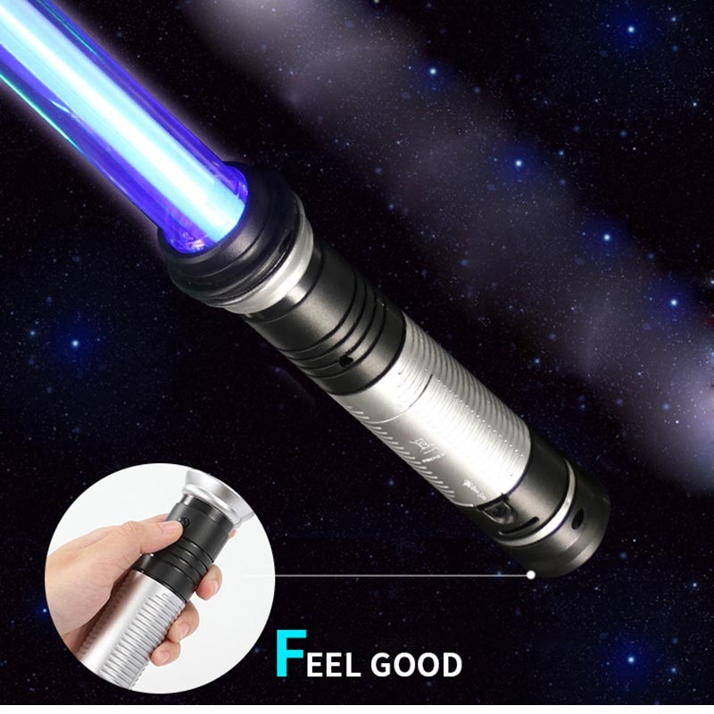 El juego de espadas LED incluye espadas rojas y azules con mango de fácil agarre y un conector de hoja.