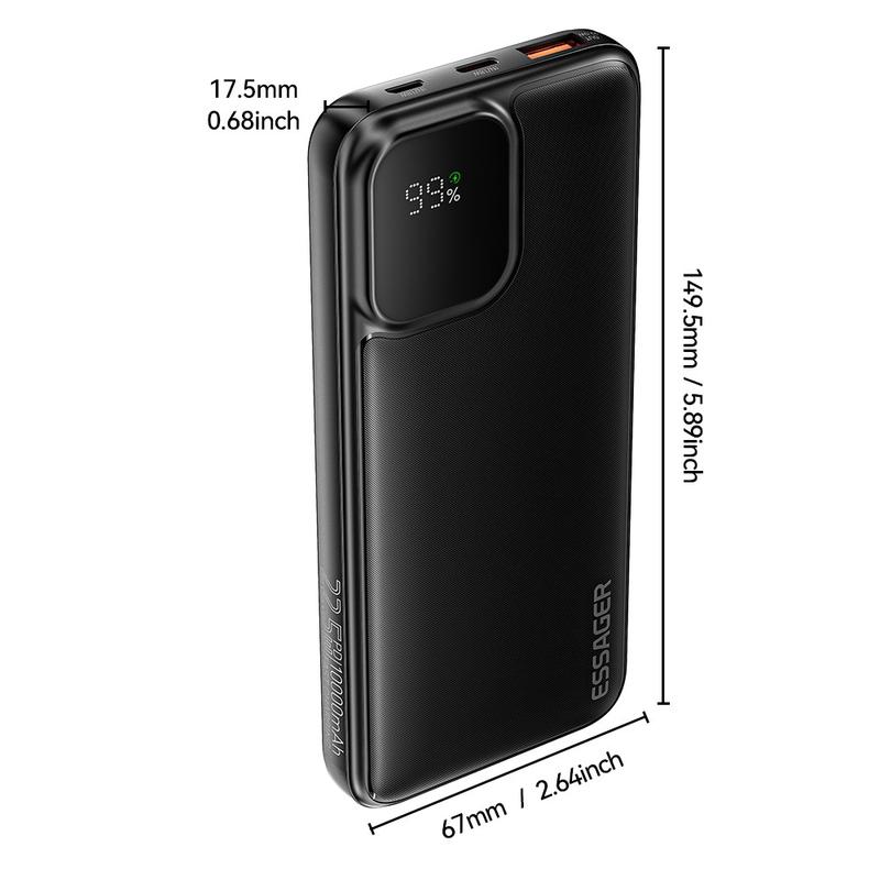 El ESSAGER 20000mAh Digital Display Power Bank está diseñado para estilos de vida modernos y acelerados. Con dos cables integrados (Type-C y Lightning), un indicador LED de potencia preciso y carga rápida de 22,5 W, proporciona energía fiable sobre la marcha sin necesidad de accesorios adicionales. Perfecto para viajes, desplazamientos y uso diario.