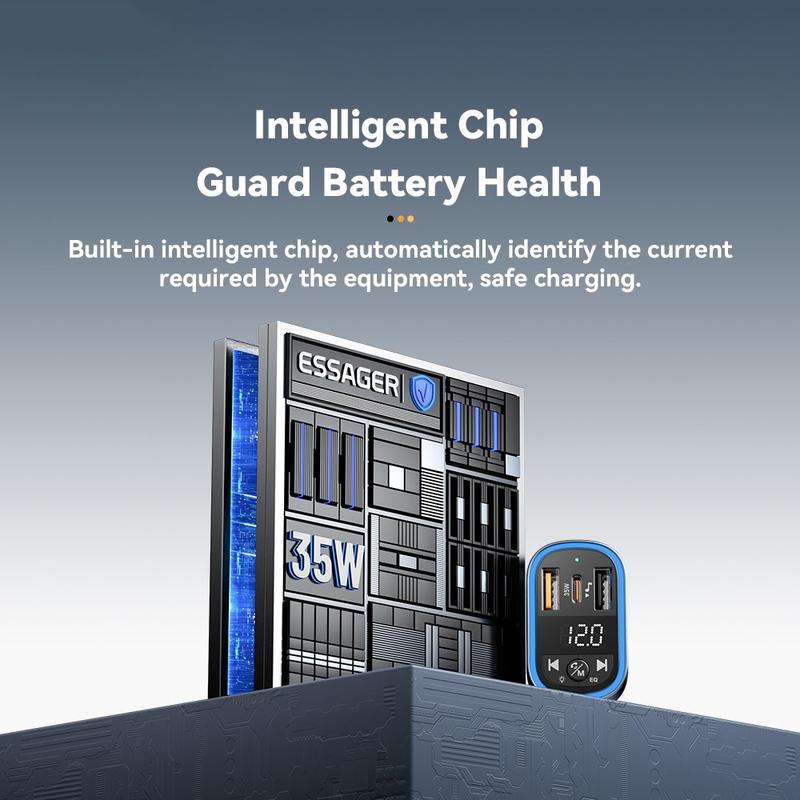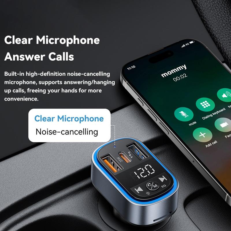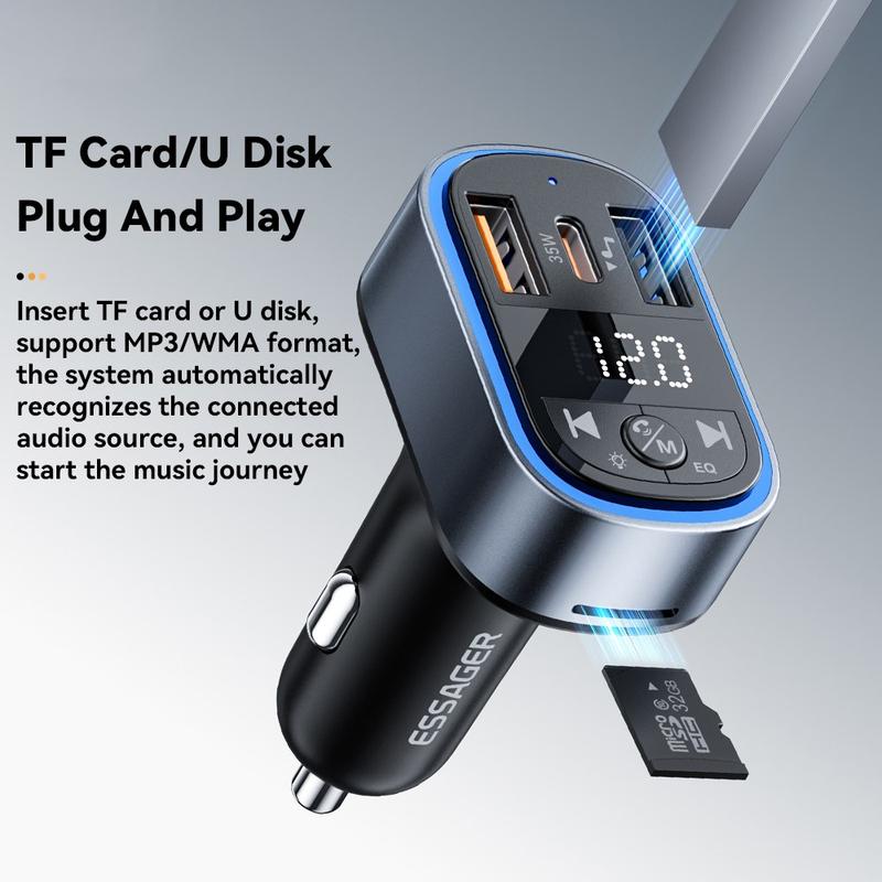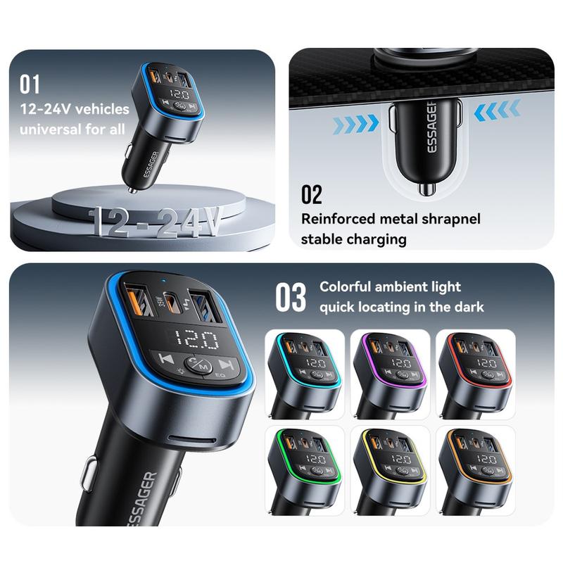 El ESSAGER ECCFM-CT0G-P combina carga rápida, transmisión inalámbrica Bluetooth 5.3, un transmisor FM, llamadas manos libres HD y soporte de reproducción multimedia, todo en un accesorio compacto y elegante para el coche. Una actualización perfecta para una conducción más segura y un mejor entretenimiento en el coche.