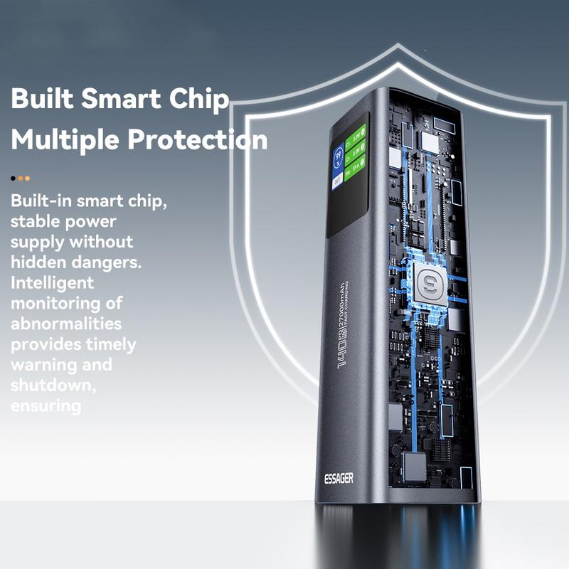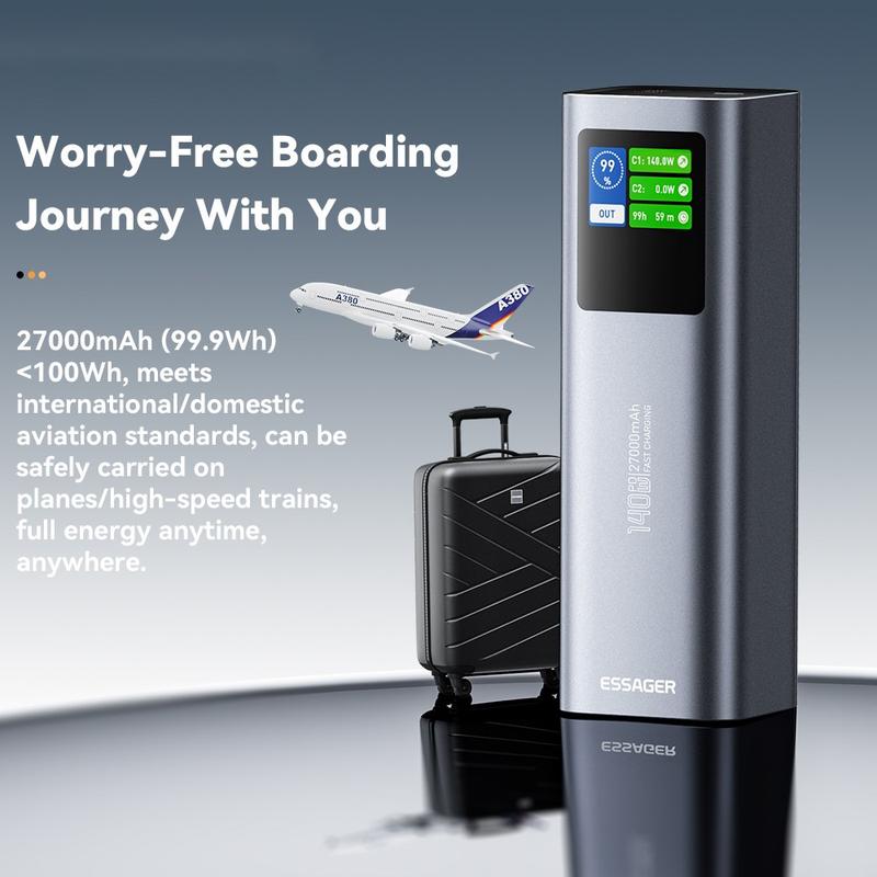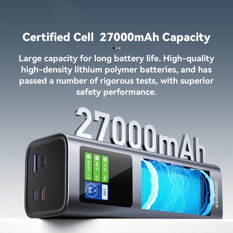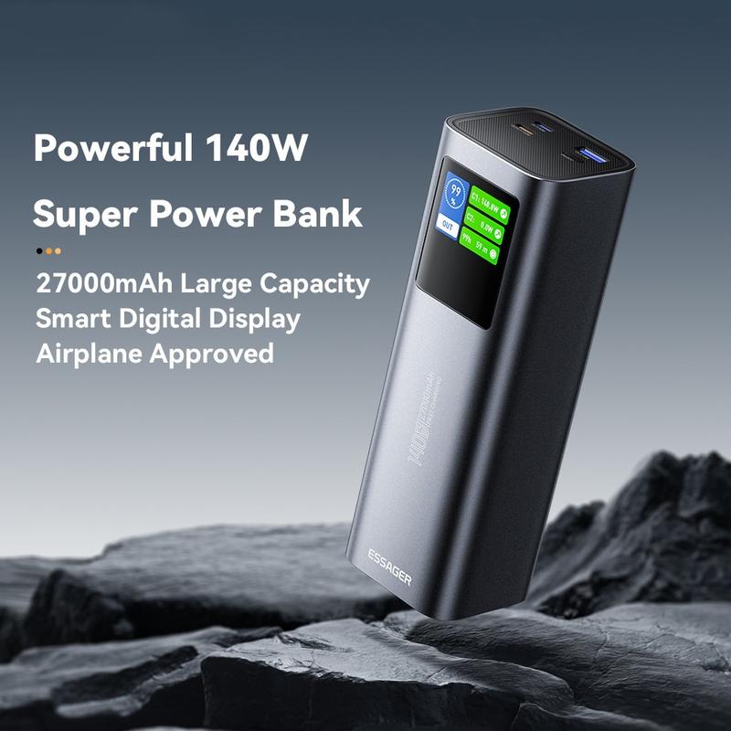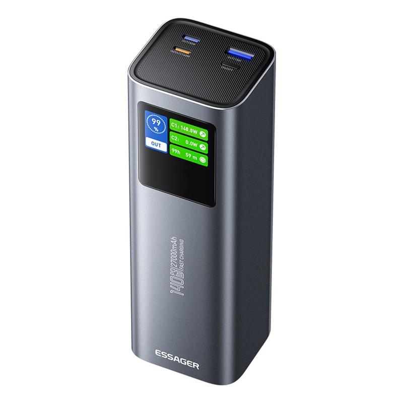 Essager EDY140W-CH0G-Z 27000mAh Power Bank - Carga rápida bidireccional de 140W, salida de triple puerto, chip inteligente con pantalla TFT en color