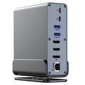 Estación de acoplamiento USB-C 15 en 1 con soporte (MST): triple 4K a 60 Hz (2x HDMI y DP), USB 3.2 a 10 Gbps, PD de 100 W, Gigabit Ethernet, SD/TF, audio de 3,5 mm