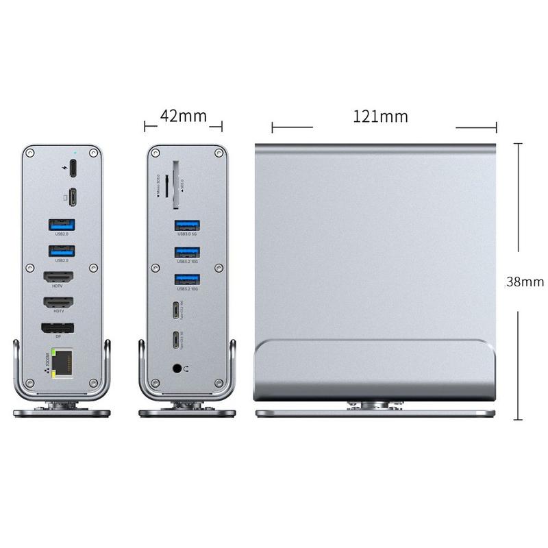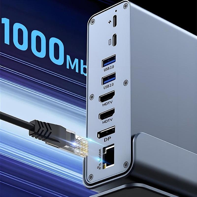 - Expansión 15 en 1: puertos USB, triple vídeo, lector de tarjetas SD/TF, Ethernet y audio de 3,5 mm en un solo concentrador