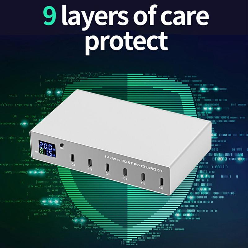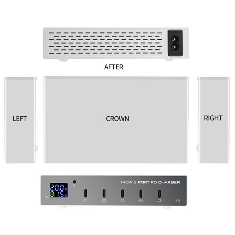 La estación de carga de sobremesa WLX-X6P 140W de alta eficiencia es un concentrador alimentado por GaN diseñado para usuarios que necesitan una carga rápida fiable de varios dispositivos en una unidad compacta. Equipada con seis puertos USB-C que suministran hasta 30 W cada uno, mantiene portátiles, tabletas, smartphones y gadgets de uso diario alimentados con facilidad, lo que resulta perfecto para escritorios domésticos, oficinas o entornos de carga compartidos.