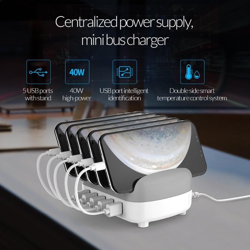 Estación de carga USB Orico DUK-5P de 5 puertos y 40W con soporte para teléfonos y tabletas - Enchufe de la UE