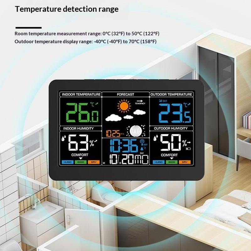 Esta estación meteorológica realiza un seguimiento de las condiciones climáticas tanto en el interior como en el exterior, lo que le ayuda a mantenerse informado sobre el entorno dentro y fuera de su hogar. Admite un rango de temperatura interior de 0 °C a 50 °C y un rango exterior de -40 °C a 70 °C, lo que la hace adecuada para su uso en diferentes estaciones. Las lecturas de humedad del 10 % al 99 % también le ayudan a controlar la calidad del aire y los niveles de confort con mayor precisión a lo largo del día.