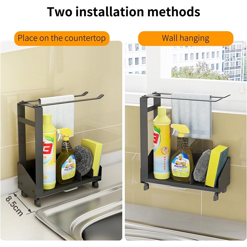 Fabricado en aluminio duradero y acero al carbono, el organizador ofrece estabilidad duradera y resistencia al desgaste diario. No requiere instalación: basta con colocarlo en la encimera o colgarlo según sea necesario. Su estructura compacta se adapta a la mayoría de los fregaderos, lo que lo convierte en la mejora ideal para cocinas, fregaderos y espacios reducidos.