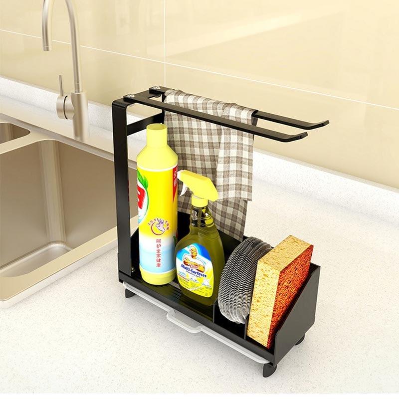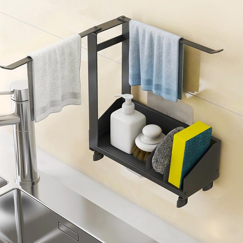 - Diseño de varias capas para un almacenamiento organizado de esponjas, cepillos de vajilla, jabón y estropajos