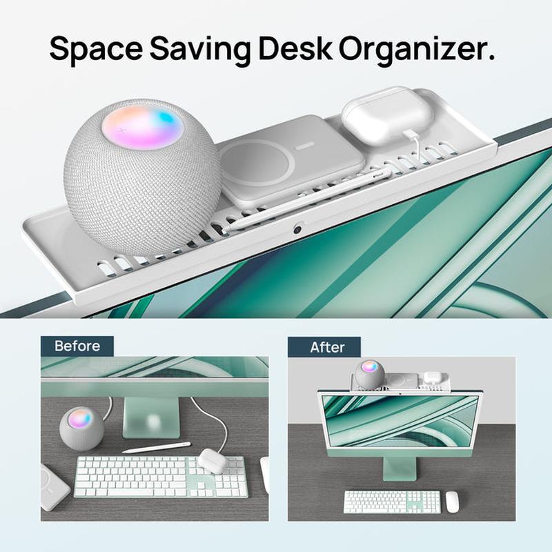 - Diseño compacto: Ahorra espacio en el escritorio añadiendo un estante de almacenamiento adicional.