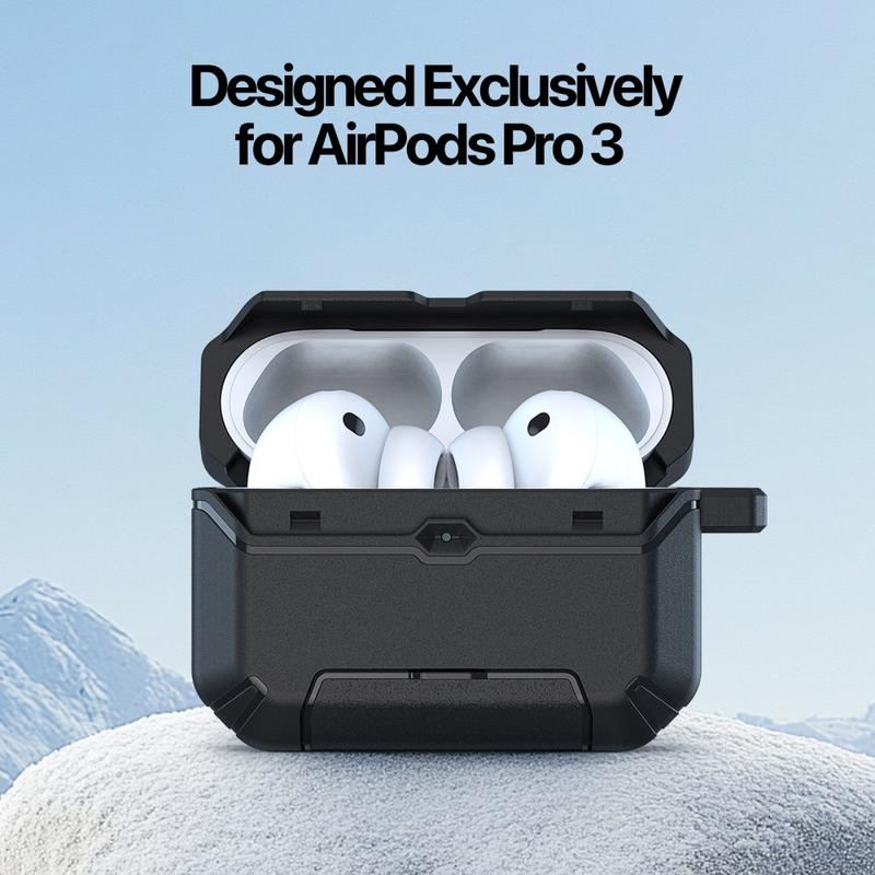 Este estuche ofrece una combinación de protección, funcionalidad inteligente y materiales de primera calidad que facilitan el uso de los AirPods Pro 3 en situaciones cotidianas. El soporte integrado es una característica de comodidad destacada que rara vez se encuentra en los estuches de los AirPods Pro 3, mientras que la construcción híbrida de PC+TPU proporciona una defensa fiable para el día a día. Compacto, elegante y práctico, mejora significativamente la usabilidad y la seguridad de tus AirPods Pro 3.