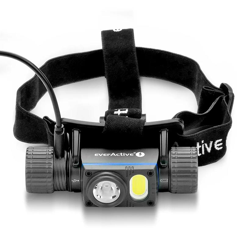 Linterna frontal LED recargable EverActive HL-2000R Force PRO - 2000 lúmenes, 6 modos, carga USB-C, impermeable IPX8