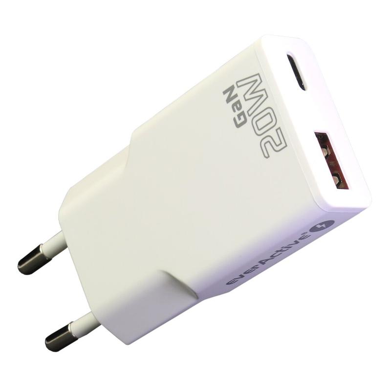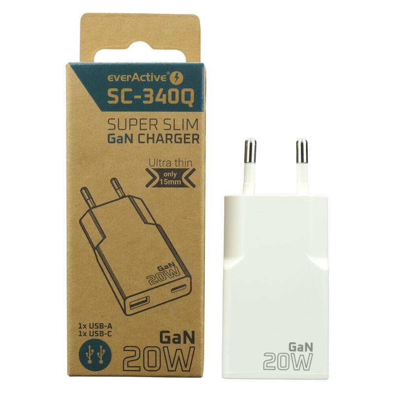 everActive SC-340Q Cargador de pared GaN superfino de 20 W con puertos USB QC3.0 y USB-C PD