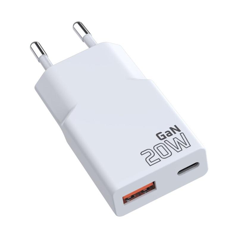 Equipado con un puerto USB-C PD y un puerto USB QC3.0, el cargador ofrece una potencia de salida total de 20W. Podrás cargar dos dispositivos a la vez (smartphones, tablets, cámaras, ultrabooks o power banks) con rapidez y fiabilidad.