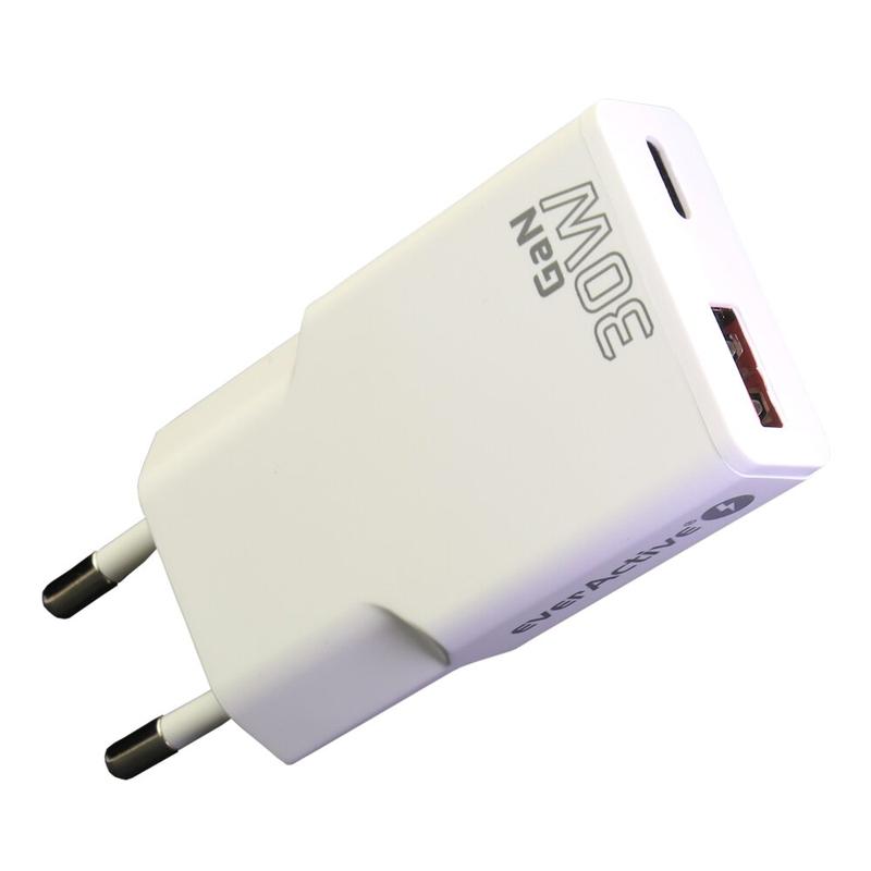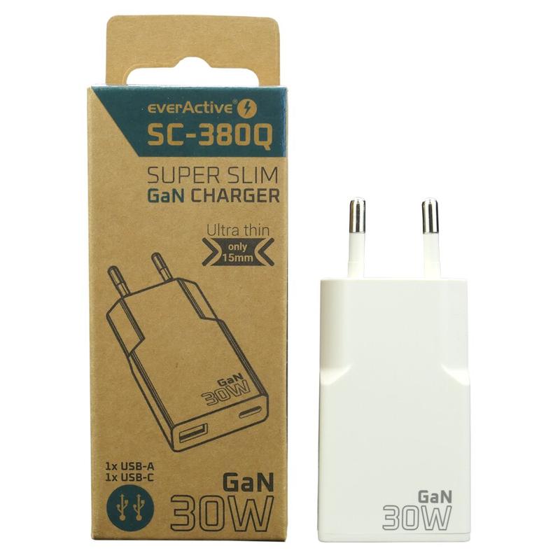 everActive SC-380Q Cargador de pared GaN superfino de 30 W con puertos USB QC3.0 y USB-C PD
