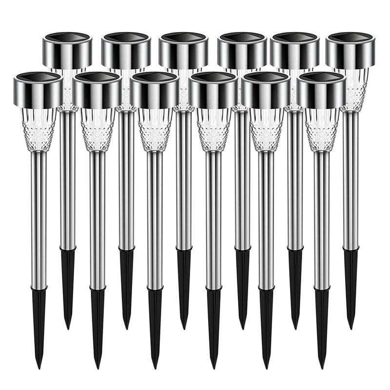 Exterior Decorativo Impermeable Anti-Deformación Acero Inoxidable Más Brillante Luces Solares - 12 piezas.