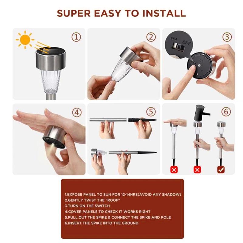 • Exterior Decorativo Impermeable Anti-Deformación Acero Inoxidable Más Brillante Luces Solares - 12 piezas.