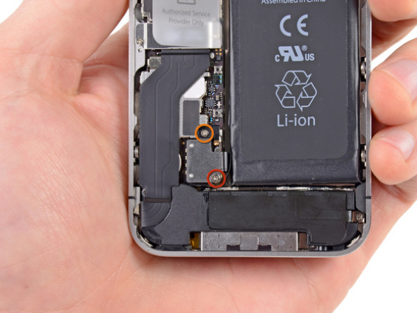 Retire los dos tornillos Pentalobe de 3,6 mm junto al conector dock.