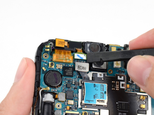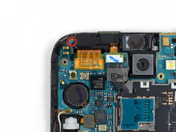 Encontrará un tornillo Phillips (3 mm) en el soporte de la cámara frontal. Retírelo.