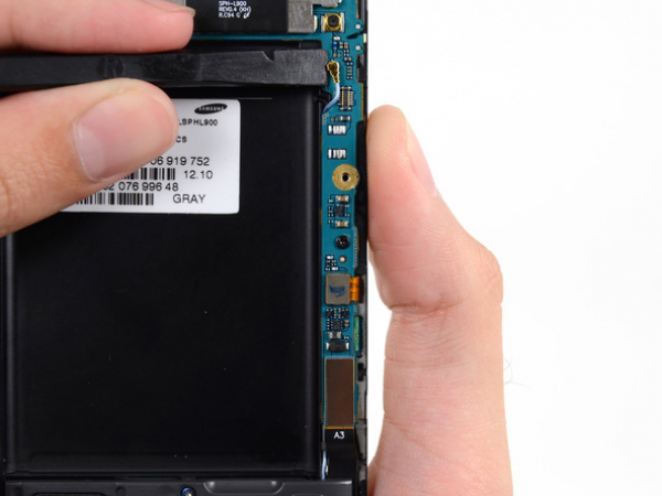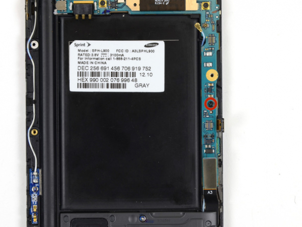 Utilice una herramienta de apertura de plástico para levantar la batería de la carcasa. Es necesario poner la herramienta en el hueco que se encuentra por encima del compartimiento de la batería para hacer esto.